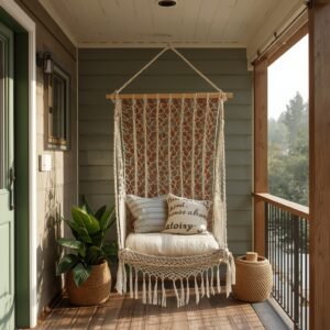 A hanging chair adds personality without overwhelming the area. It feels playful but still practical.