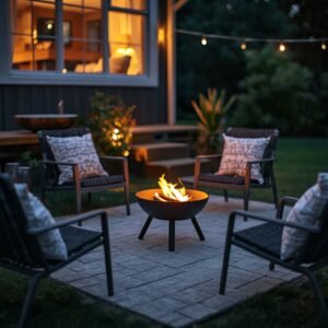 Even a small portable fire pit can turn your patio into a gathering spot. The glow naturally draws people in and makes evenings linger longer.