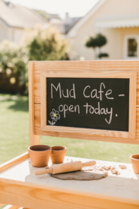 A chalkboard panel built into the back of a mud kitchen sounds like a small addition. It is, in practice, a complete transformation of the play experience. The moment children have a surface to write on — to name their kitchen, to write their menu, to record their recipes — the mud kitchen shifts from a sensory play station into a full-blown narrative environment. It becomes a cafe. A restaurant. A bakery. A potion laboratory with a very official-looking list of ingredients. The chalkboard is the hinge point where physical play and imaginative storytelling connect.
