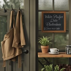 A few hooks near the door for your apron and gloves means you never have to hunt for them. A small shelf for a water bottle or a cup of tea makes the space hospitable. A blackboard or notebook for jotting sowing dates, plant names, and observations turns a working space into a thinking space. None of these elements cost much or take much room, but collectively they shift the feel from shed to studio.